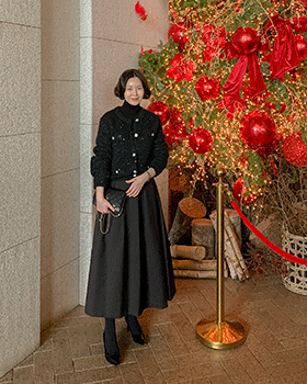 优雅的廓形,奢华的材质,时尚温暖与优雅的同时 河流群/喇叭裙 裙子